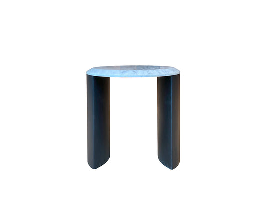 Gemini Marble Side Table, White Top Black Base